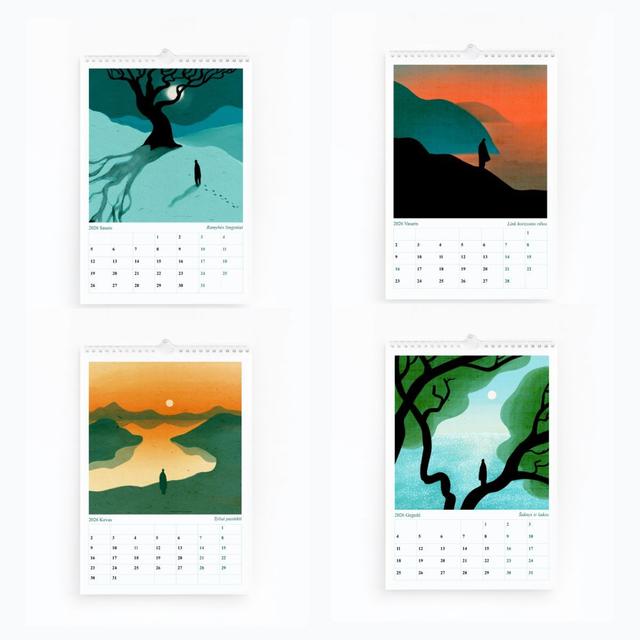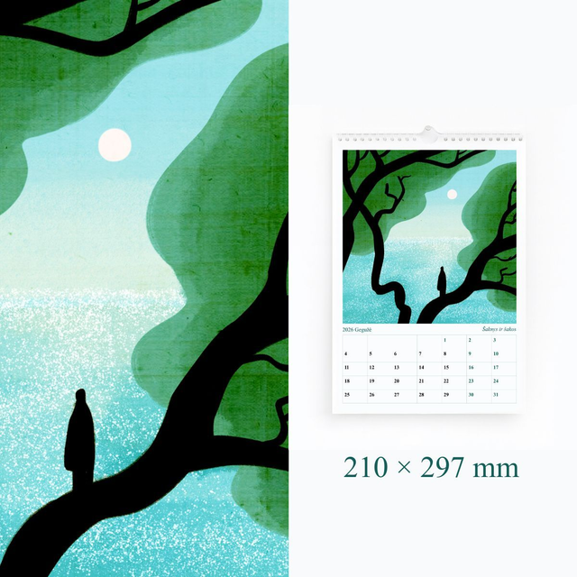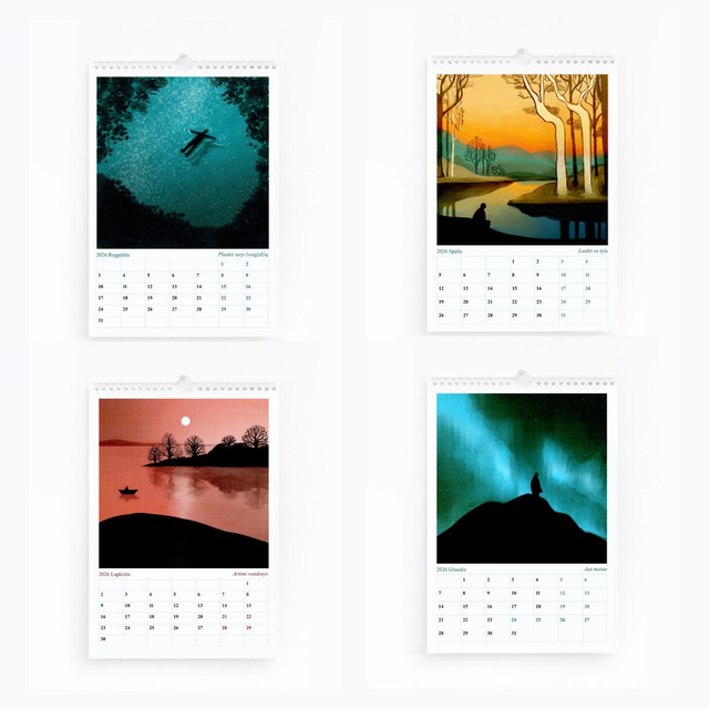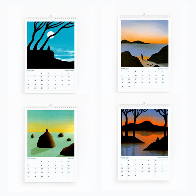 Sieninis kalendorius „Žmogus ir Gamta“ –A4 dydžio (210 × 297 mm), su 12 mano autorinių piešinių apie žmogaus ryšį su gamta. Kiekviena iliustracija turi savo pavadinimą.